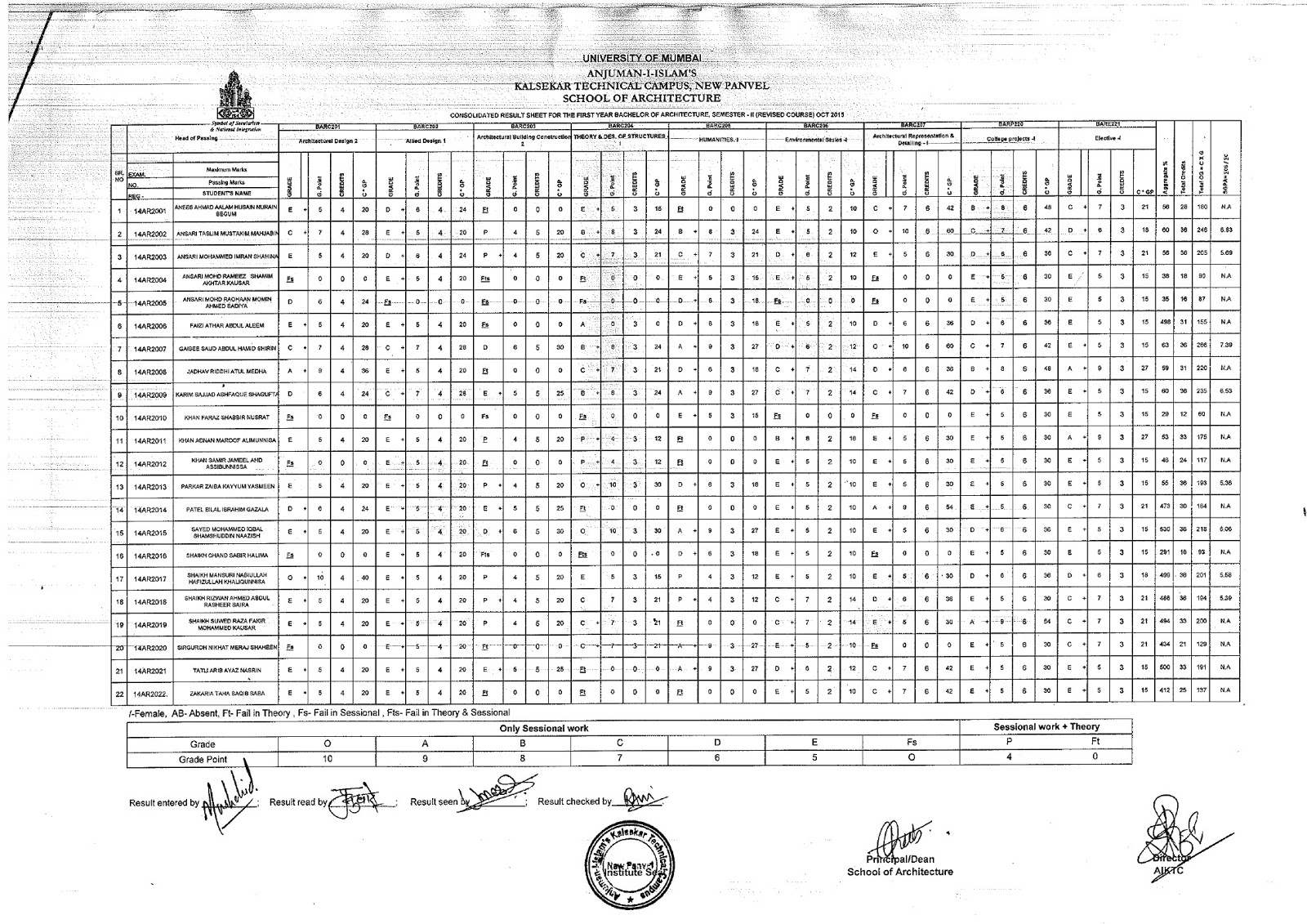 RESULTS- B. ARCH - 2ND HALF OF2015, 1ST HALF OF 2016, 1ST HALF OF 2017 & 2ND HALF OF 2017 EXAMINATIONS