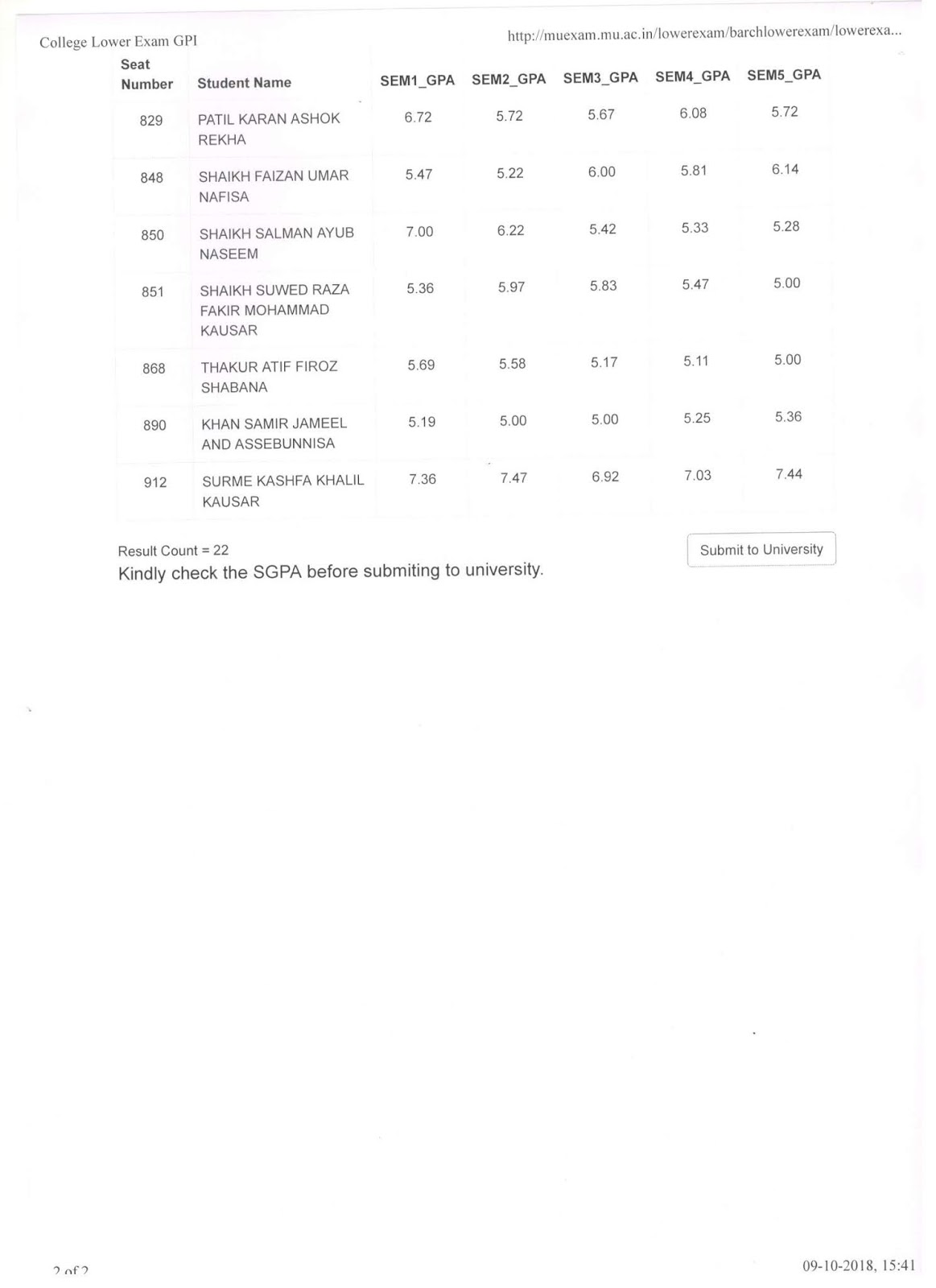 B.ARCH-SEM-VI-CBSGS- STUDENTS ARE INFORMED TO CHECK THEIR SGPI OF LOWER SEMESTERS FROM THE LIST UPLOADED HERE ...
