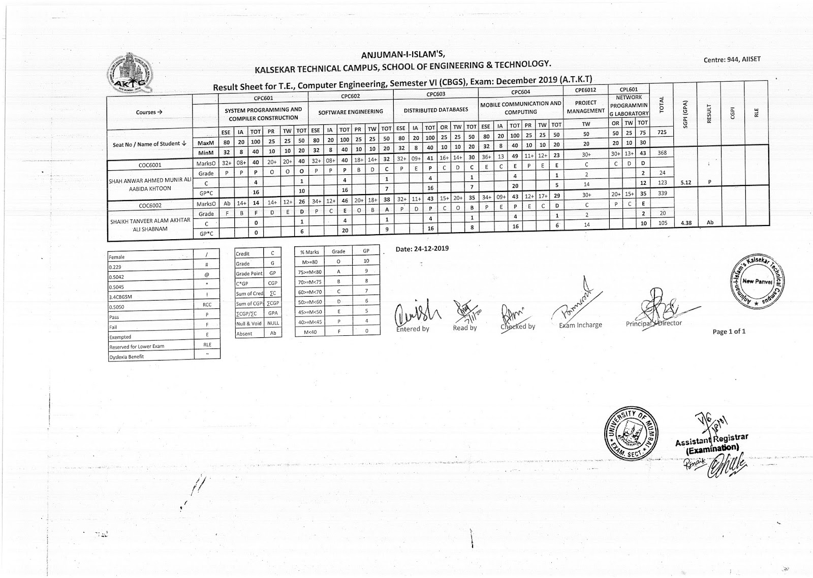ANY DISCREPANCIES IN THE GAZETTE SHOULD BE BROUGHT TO THE NOTICE OF EXAM CELL ON OR BEFORE 17/02/2020.